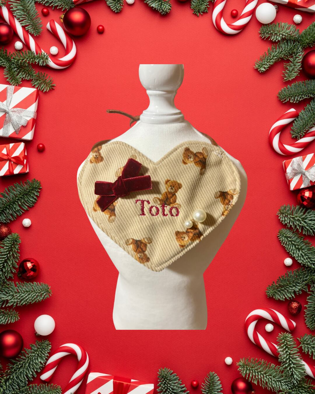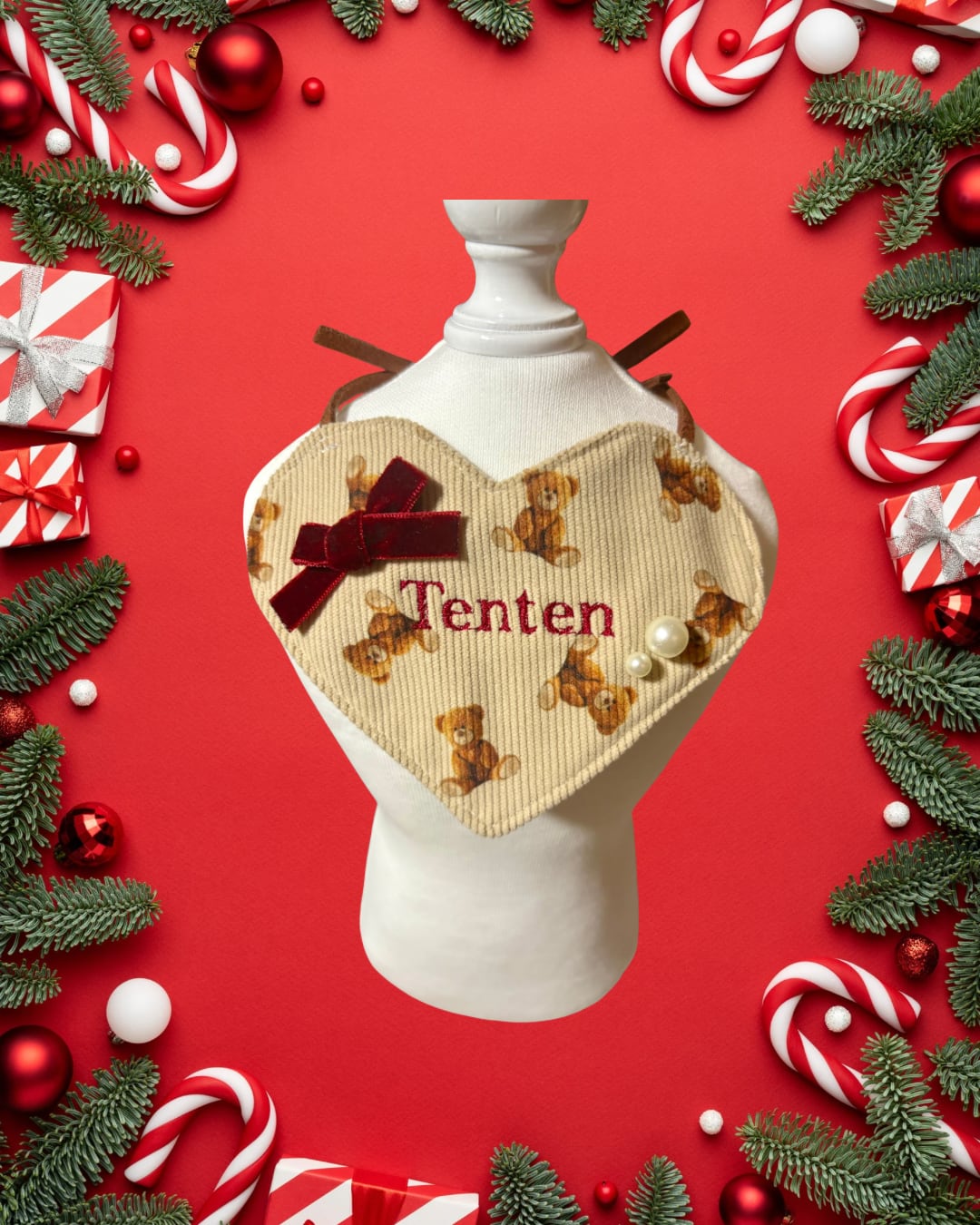 愛するペットのための、ネーム入りハート型ビブが登場しました!