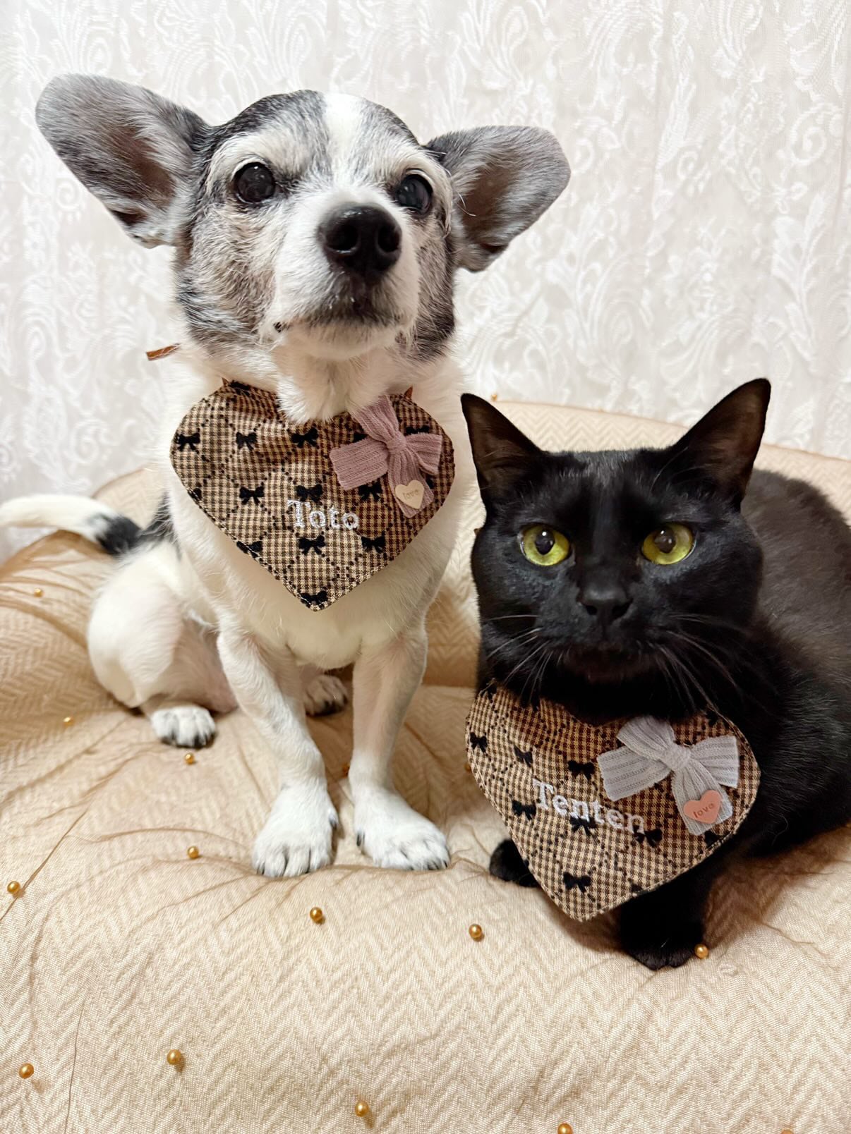 このレトロリボン柄ビブを身につけて、愛犬との特別なひとときを楽しんでみませんか?可愛いデザインで、愛犬の魅力を最大限に引き出します!