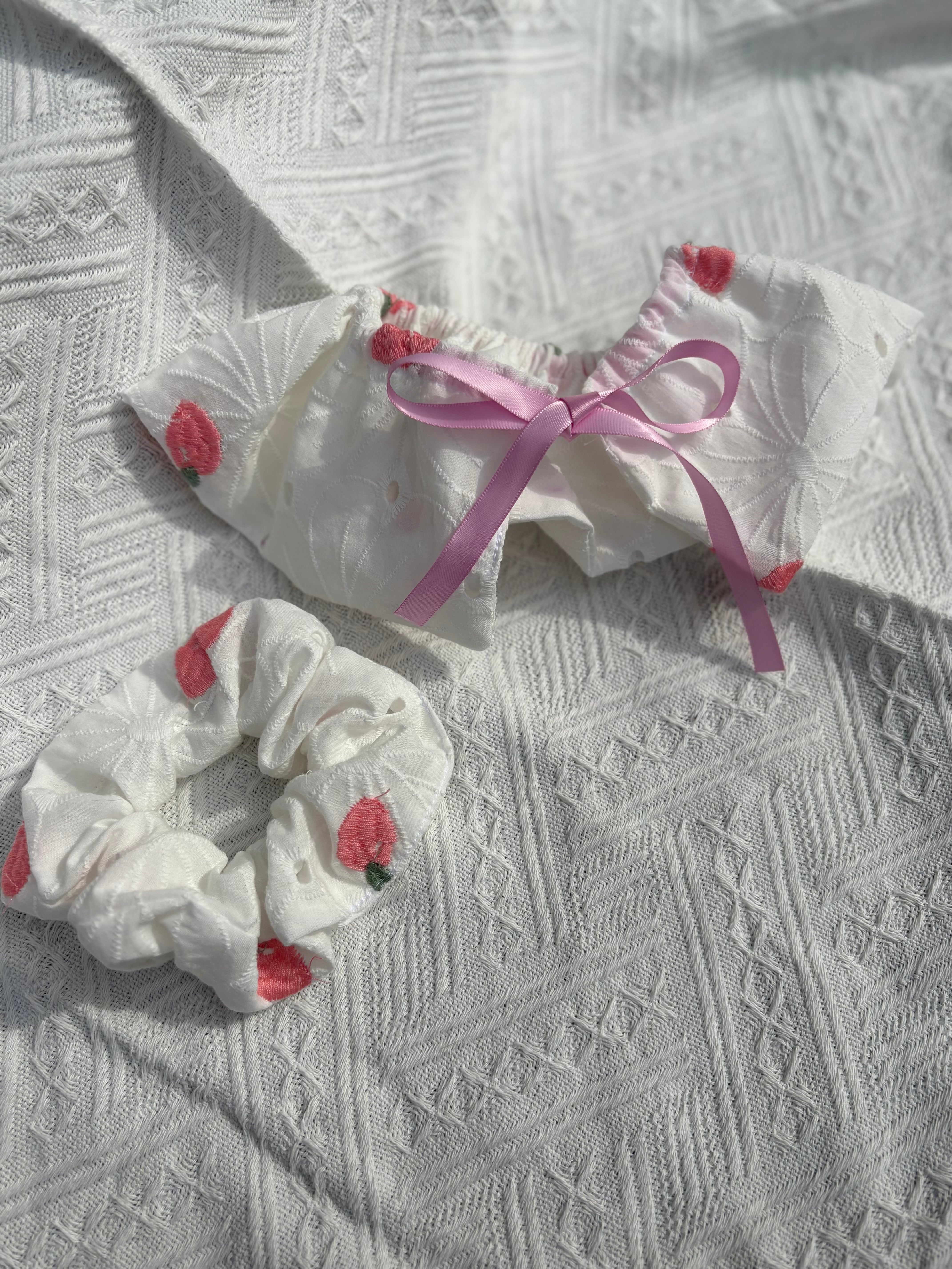 愛らしいいちご柄と繊細なレースが特徴の、特別なスタイです。